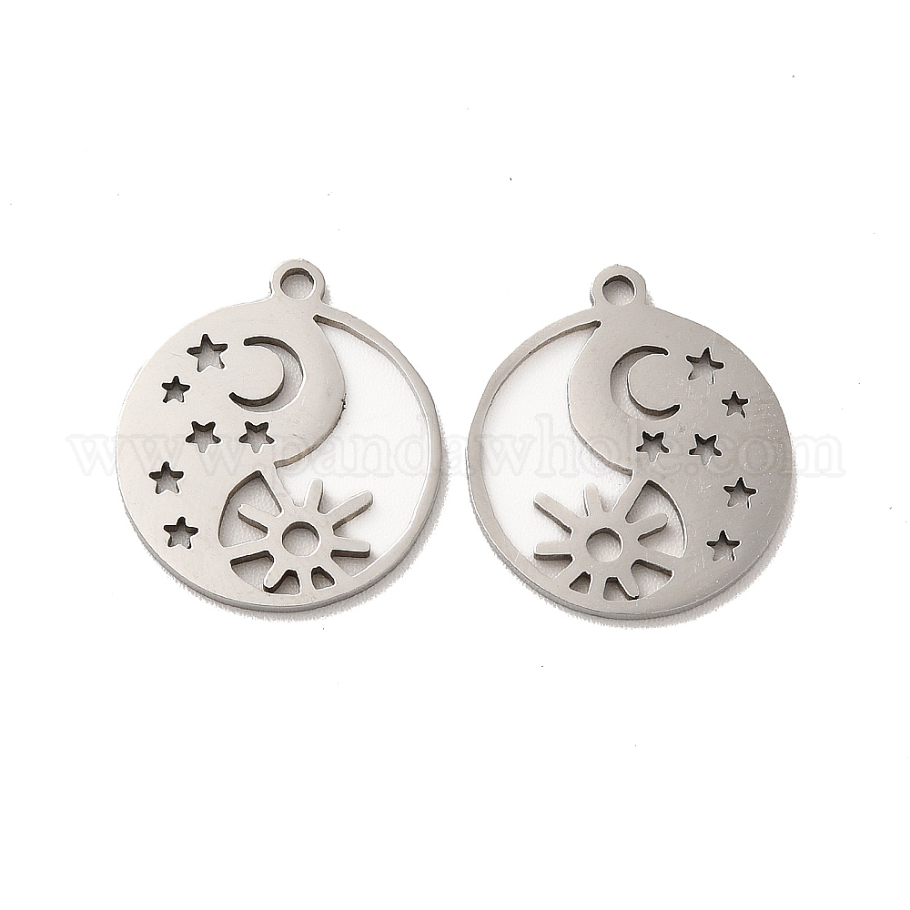 • Нержавеющая Сталь Цвет Не тускнеющие 201 подвески из нержавеющей стали, плоский круглый с луной/звездой/солнцем, цвет нержавеющей стали, 17.5x15.5x1 мм, отверстие : 1.2 мм
