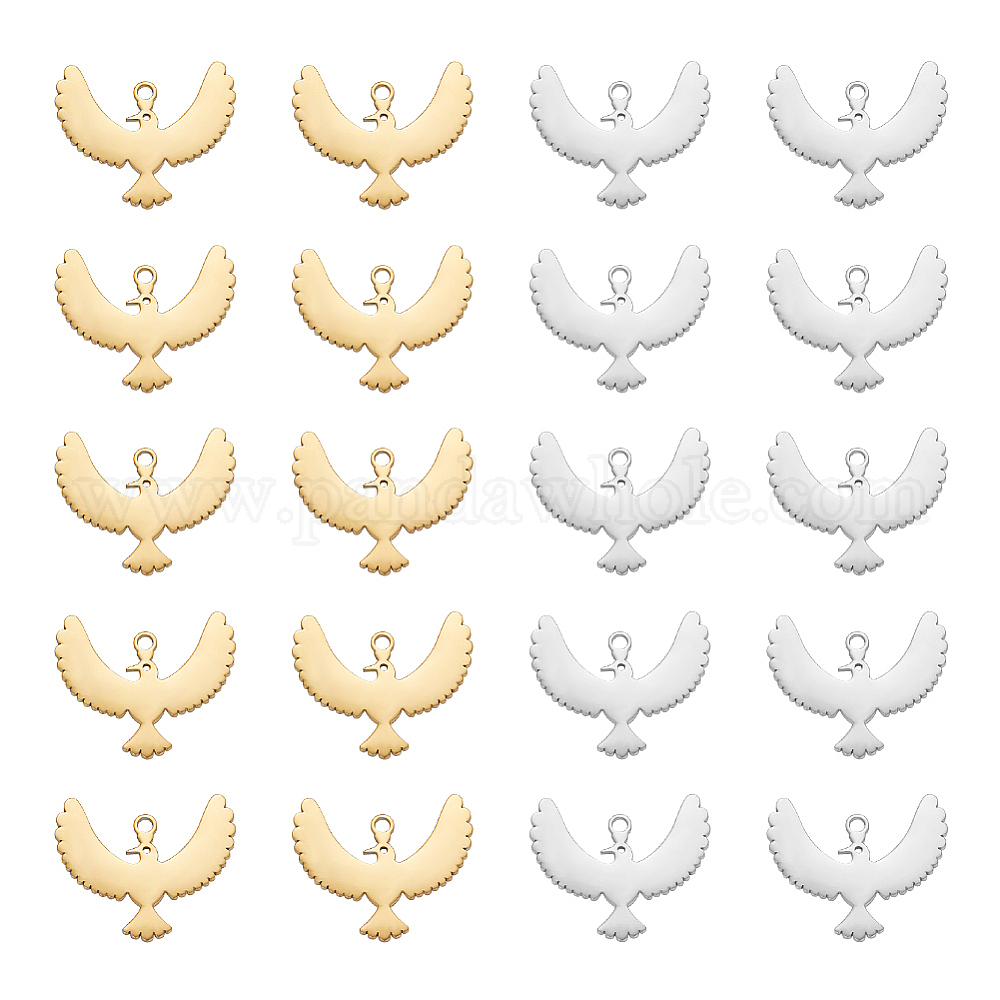 20 шт. 2 цвета 304 подвески из нержавеющей стали, очарование птицы