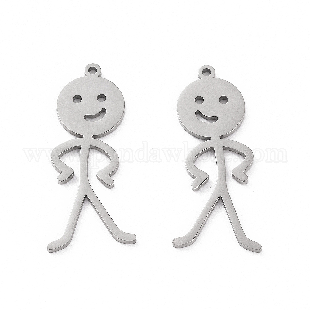 • Нержавеющая Сталь Цвет Не тускнеющие 304 подвески из нержавеющей стали, человеческое обаяние, цвет нержавеющей стали, 37x16x1.5 мм, отверстие : 1.4 мм