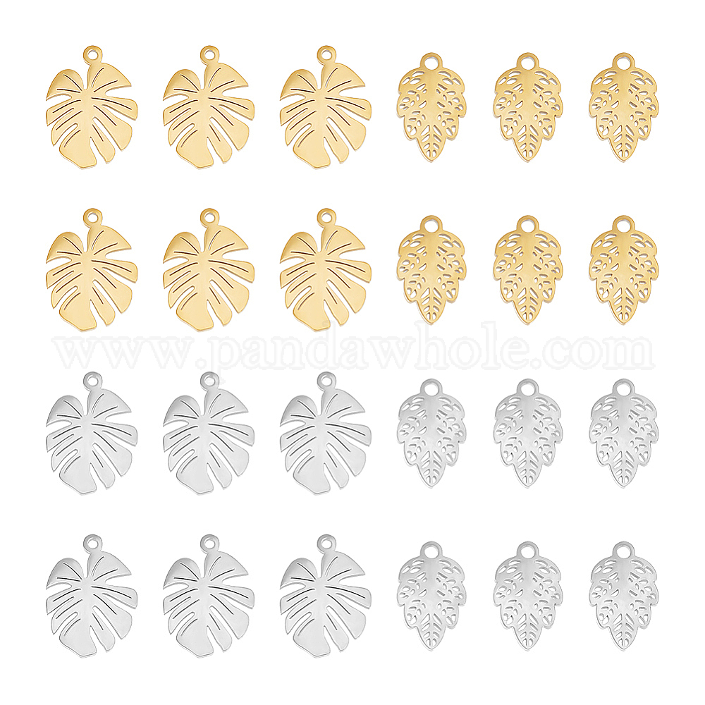 24 шт 4 стиль 304 подвески из нержавеющей стали, подвески из тропических листьев