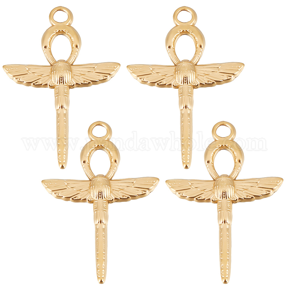 • Настоящее золото 18K 10 шт. 201 подвески из нержавеющей стали, анх крест с крылом, реальный 18 k позолоченный, 30.5x21.5x2.5 мм, отверстие : 2.5 мм
