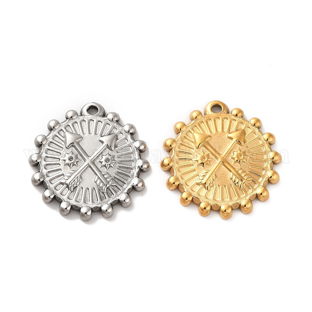 Ионное покрытие (ip) 304 подвески из нержавеющей стали, плоский круглый с шармом в виде стрелы