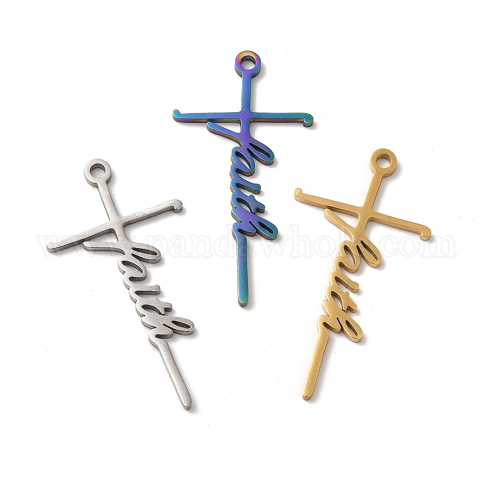 Ионное покрытие (ip) 304 подвески из нержавеющей стали, крест со словом вера оберег