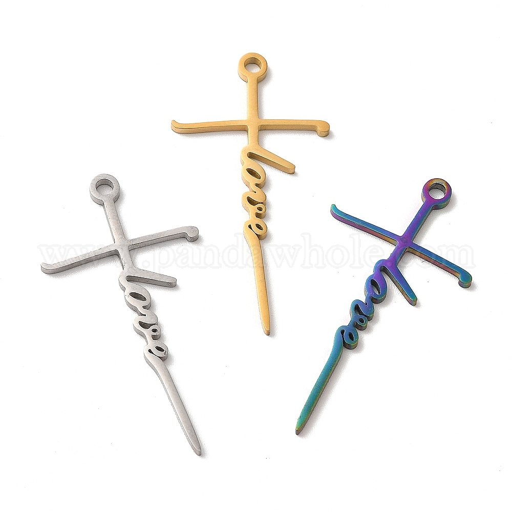Ионное покрытие (ip) 304 подвески из нержавеющей стали, крест со словом любовный оберег
