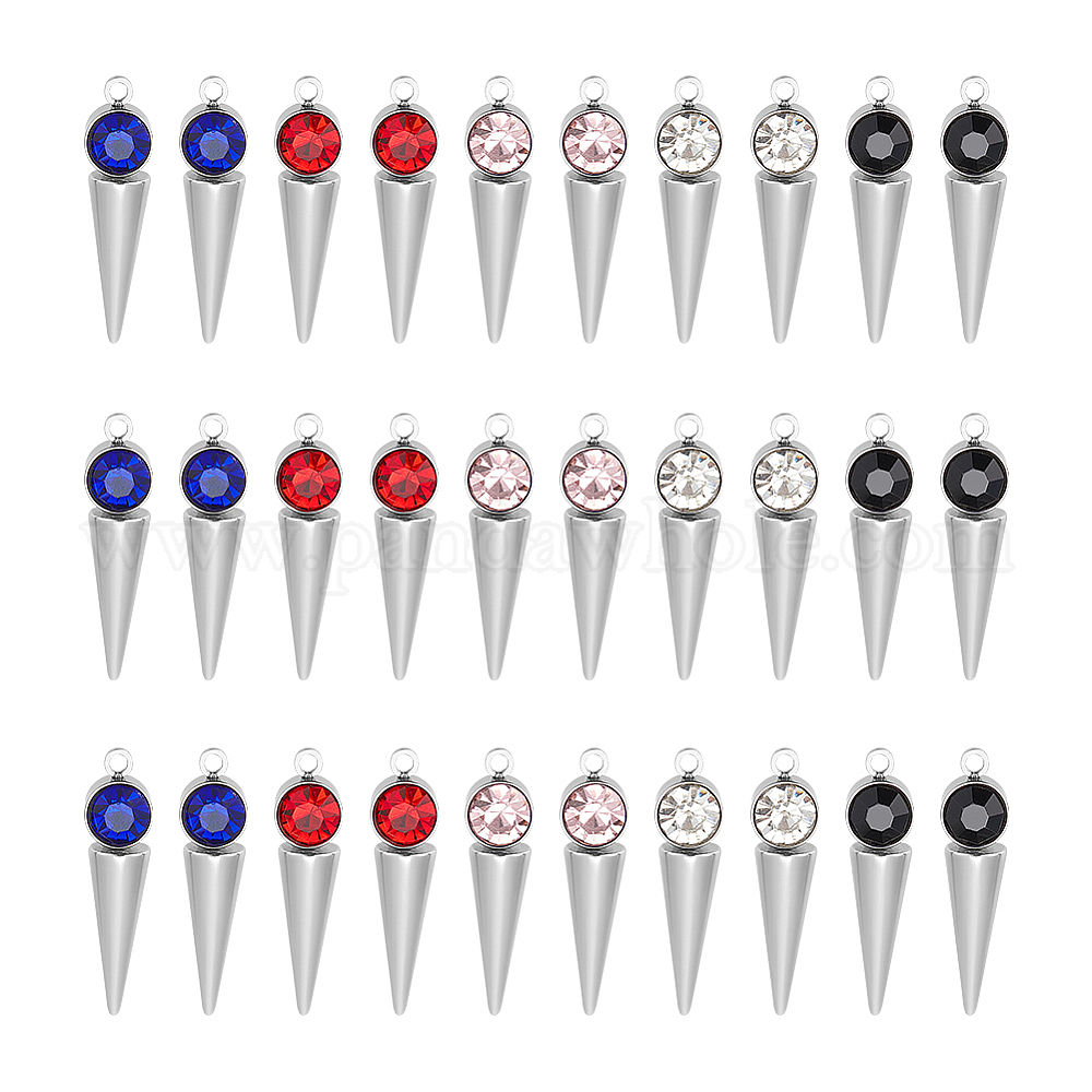 30 шт. 5 цвета 202 подвески из нержавеющей стали, со стразами, шарм конус/шип, цвет нержавеющей стали