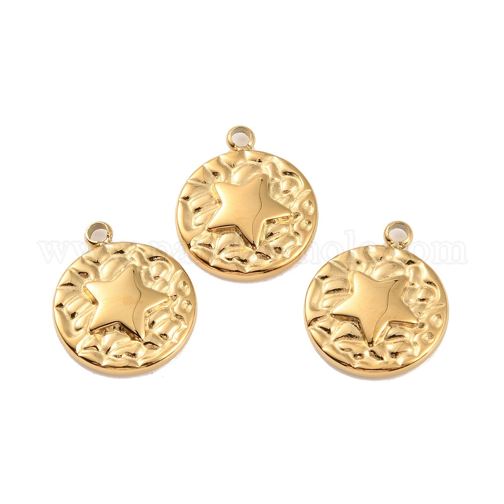 Ионное покрытие (ip) 304 подвески из нержавеющей стали, плоский круглый с шармом в виде звезды