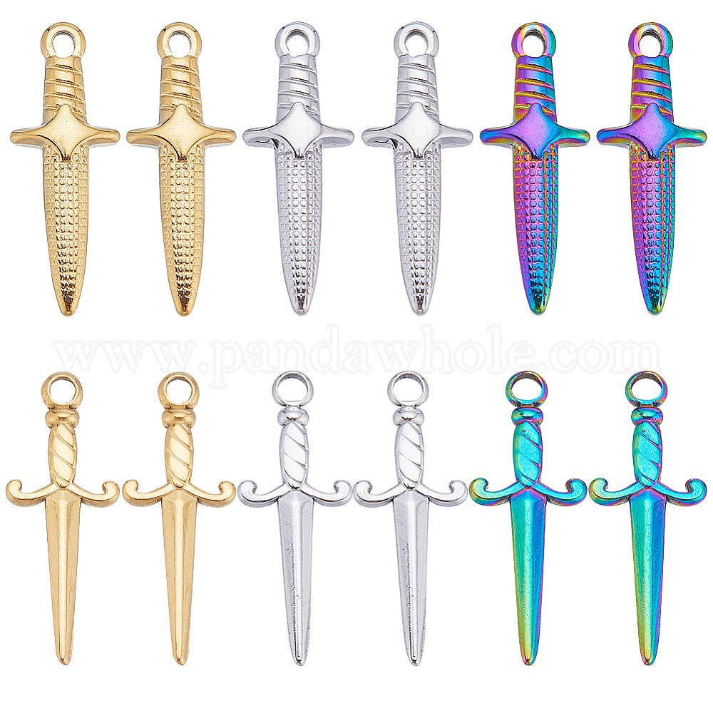 24 шт. 6 стили 201 и 304 подвески из нержавеющей стали, меч прелести