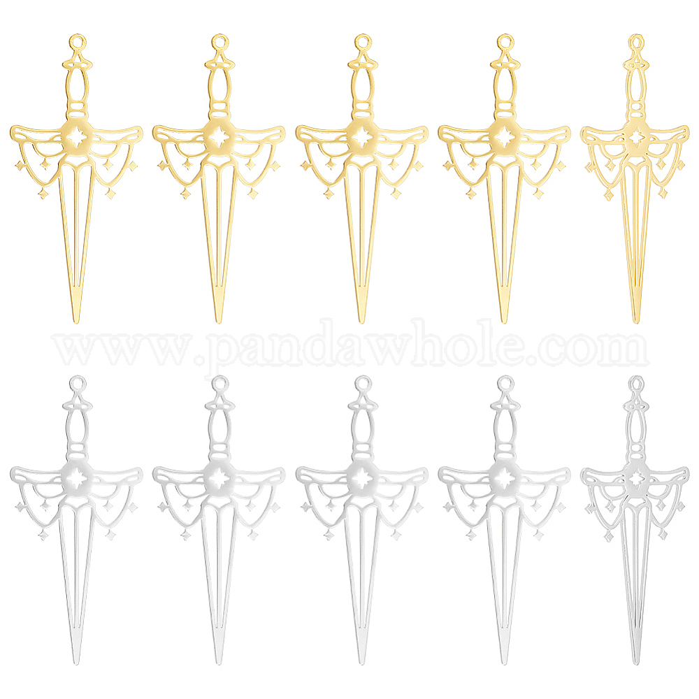 Подвески для мечей: длина около 1.97 дюйма (50 мм)., 0.91 дюйм (23 мм) шириной, 0.04 дюйм (1 мм) толщиной, отверстие: 0.06~0.07 дюйм (1.6~1.8 мм), 2 цветов, 10 шт / цвет, 20 шт;