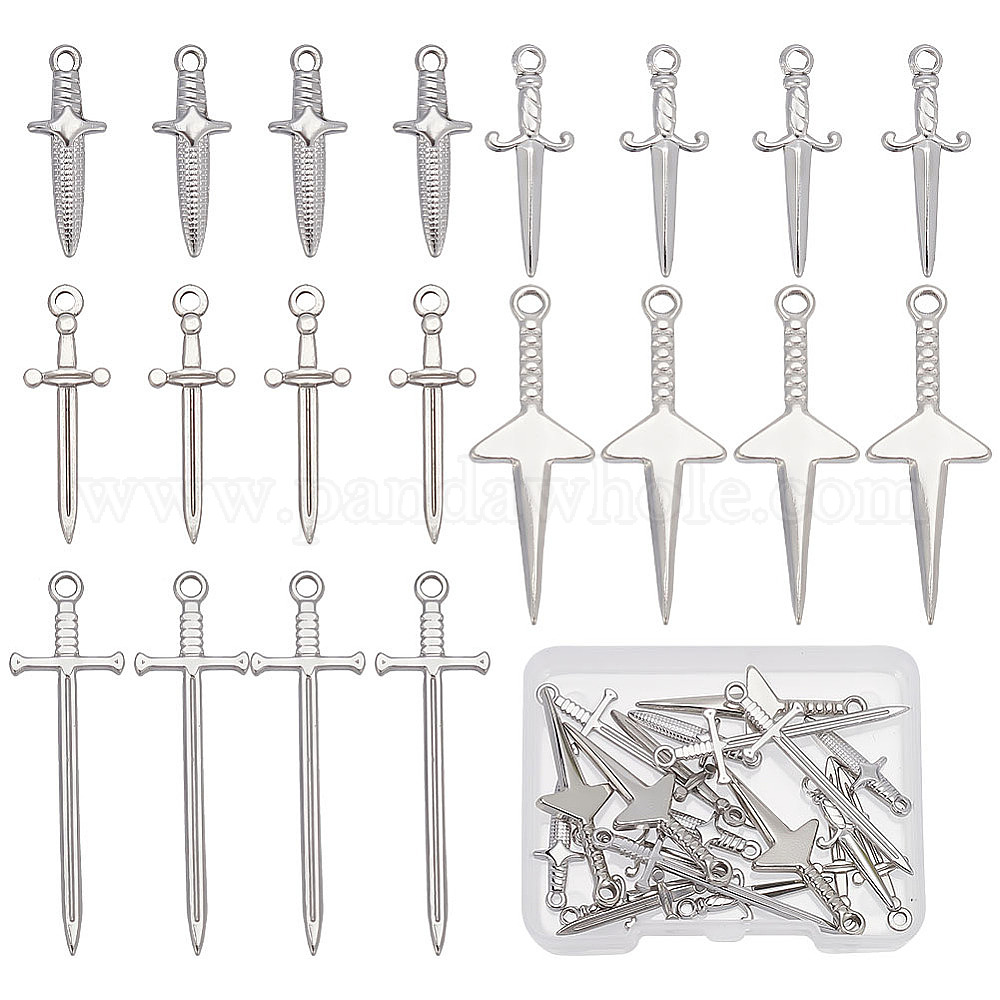 • Нержавеющая Сталь Цвет 20шт 5 стиль 201 и 304 подвески из нержавеющей стали, очарование меча, цвет нержавеющей стали, 24.5~45x9~14.5x2~4 мм, отверстие : 1.5~2.5 мм, 4 шт / стиль