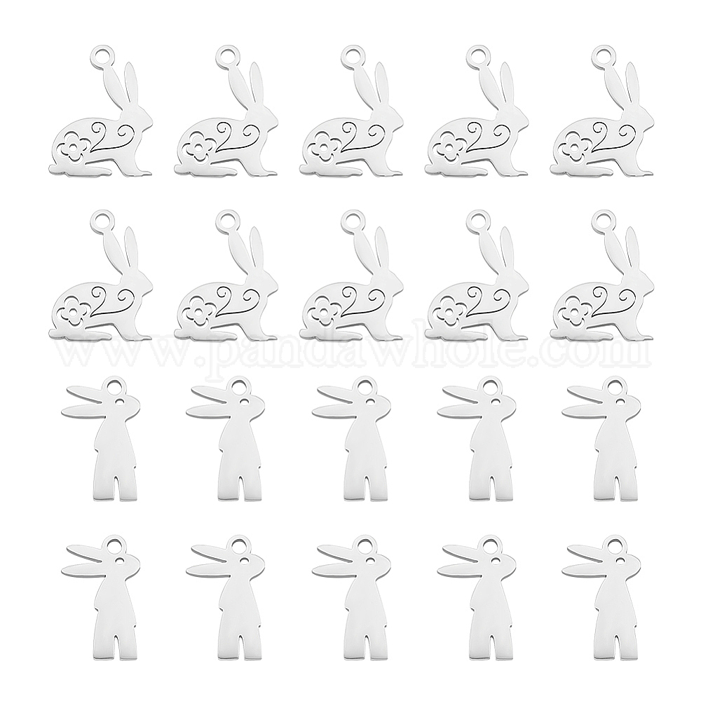 • Нержавеющая Сталь Цвет 20 шт 2 стиль 201 подвески в виде кроликов из нержавеющей стали, лазерная резка, кролик, цвет нержавеющей стали, 16x12x1 мм, отверстие : 1.5 мм, 10 шт / стиль