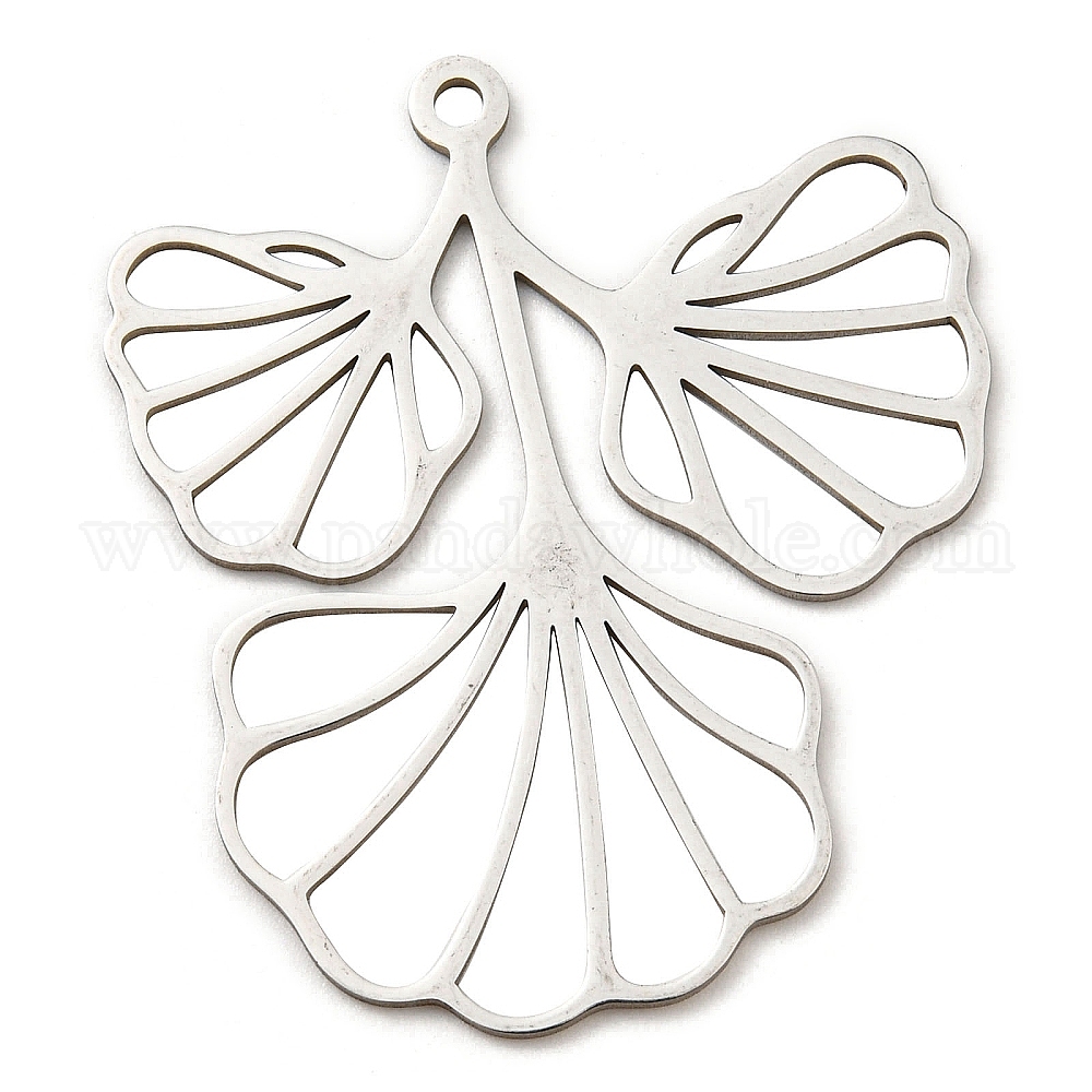 • Нержавеющая Сталь Цвет Не тускнеющие 201 подвески из нержавеющей стали, лазерная резка, очарование листьев гинкго, цвет нержавеющей стали, 41x35x1 мм, отверстие : 1.8 мм