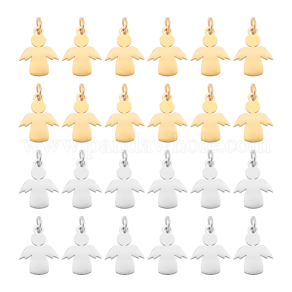 12 шт. 2 цвета 201 подвески из нержавеющей стали, штамповка бланков, с распаяными кольцами, ангел