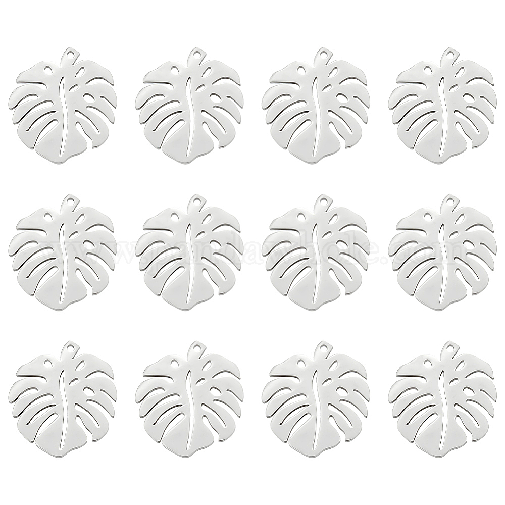 12 шт. 201 подвески из нержавеющей стали, подвески из тропических листьев, лист монстры, полый