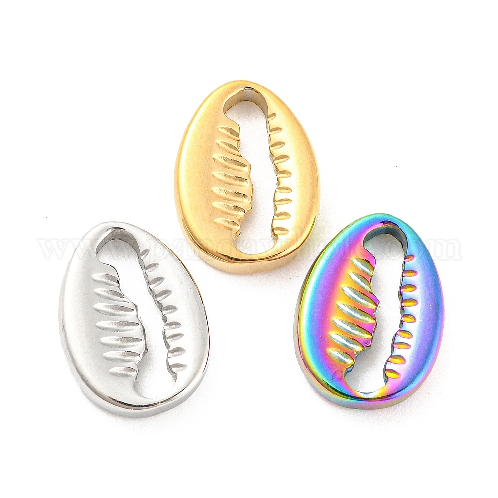 • Нержавеющая Сталь Цвет Не тускнеющие 304 подвески из нержавеющей стали, подвески в форме ракушек, цвет нержавеющей стали, 17.5x13.5x3 мм, отверстие : 15x3 мм