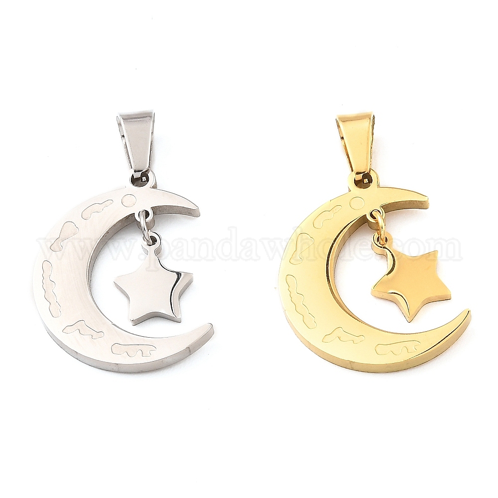 Ионное покрытие (ip) 304 кулон из нержавеющей стали, луна со звездным шармом