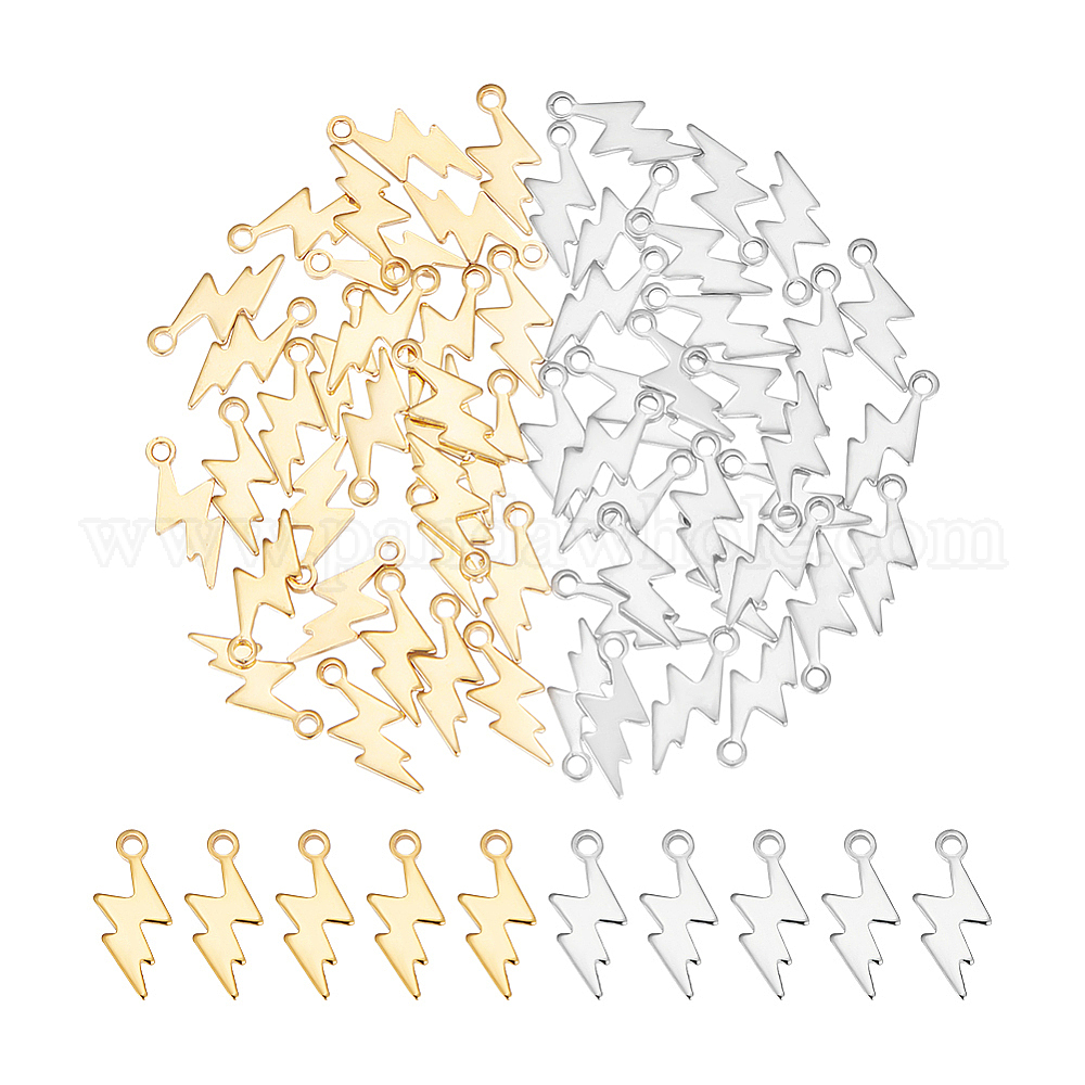60 шт 2 цвета 201 подвески из нержавеющей стали, шарм молнии