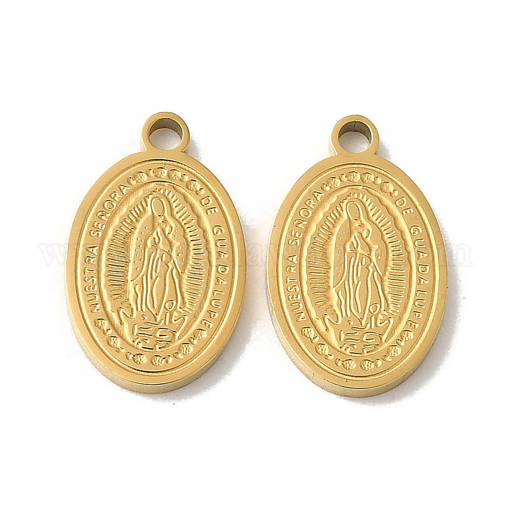 • Настоящее золото 18K Ручная полировка 304 подвески из нержавеющей стали, овал со святым шармом, реальный 18 k позолоченный, 14x8.5x1.5 мм, отверстие : 1.5 мм