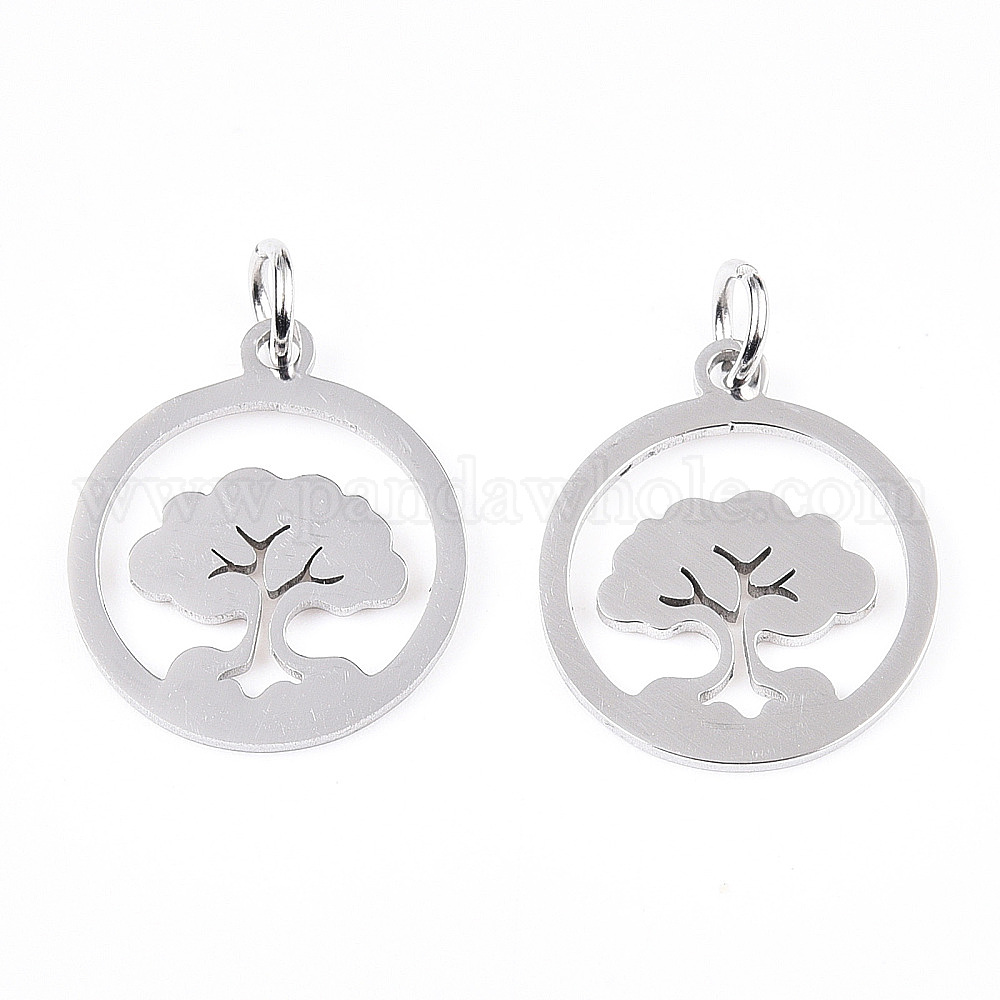 • Нержавеющая Сталь Цвет Не тускнеющие 304 подвески из нержавеющей стали, с целью перехода в кольце, плоские круглые с древа жизни, цвет нержавеющей стали, 17.5x15x1 мм, отверстие : 3.2 мм