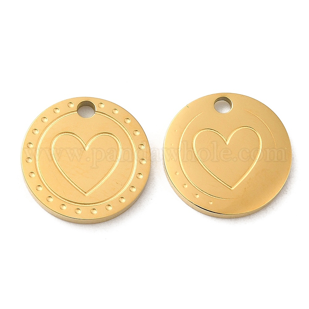 • Настоящее золото 18K Ионное покрытие (ip) 316 l подвески из хирургической нержавеющей стали, без никеля , плоский круглый с подвеской в виде сердца, реальный 18 k позолоченный, 12x1.5 мм, отверстие : 1.6 мм