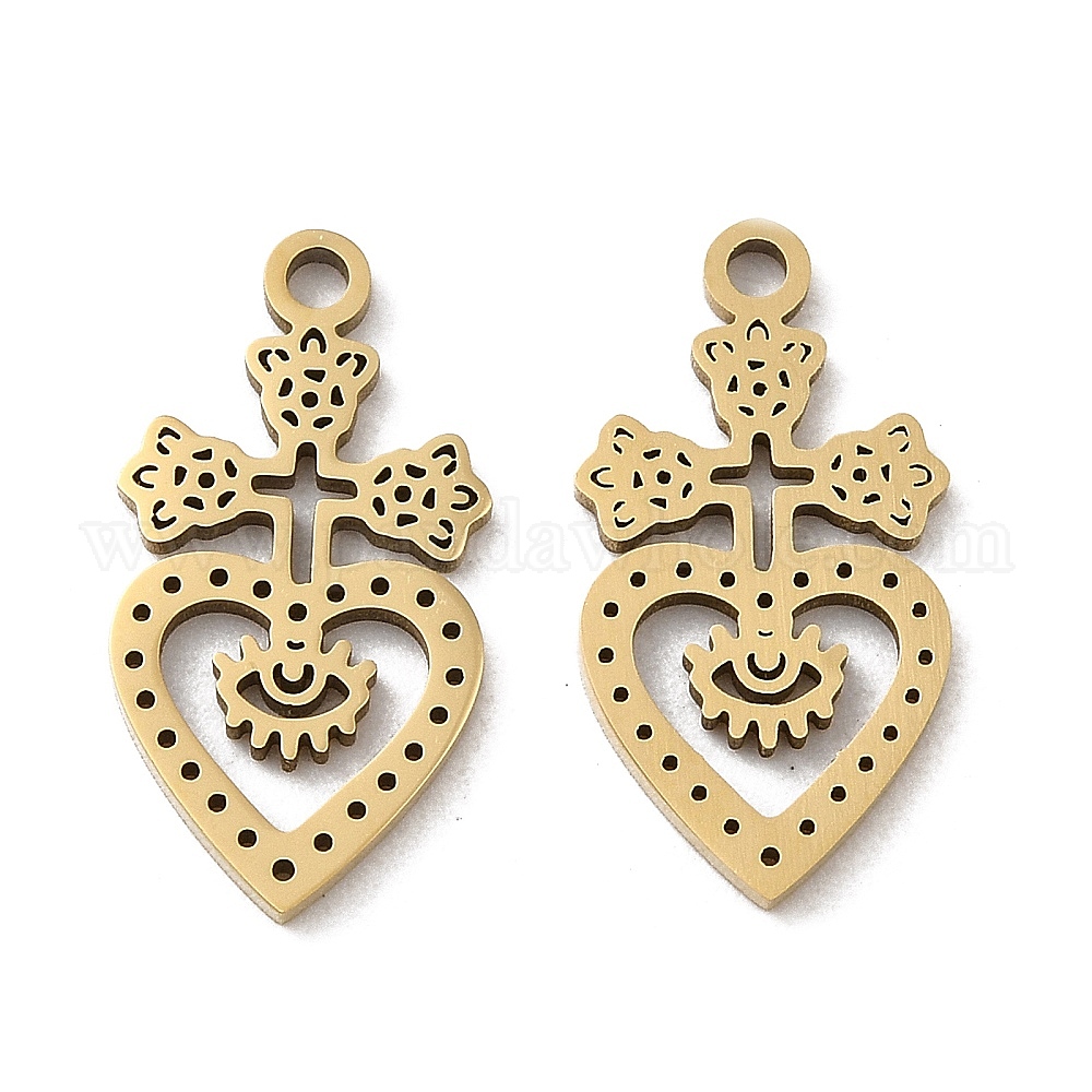 Ионное покрытие (ip) 316l подвески из хирургической нержавеющей стали, без никеля , крест с подвеской в виде сердца
