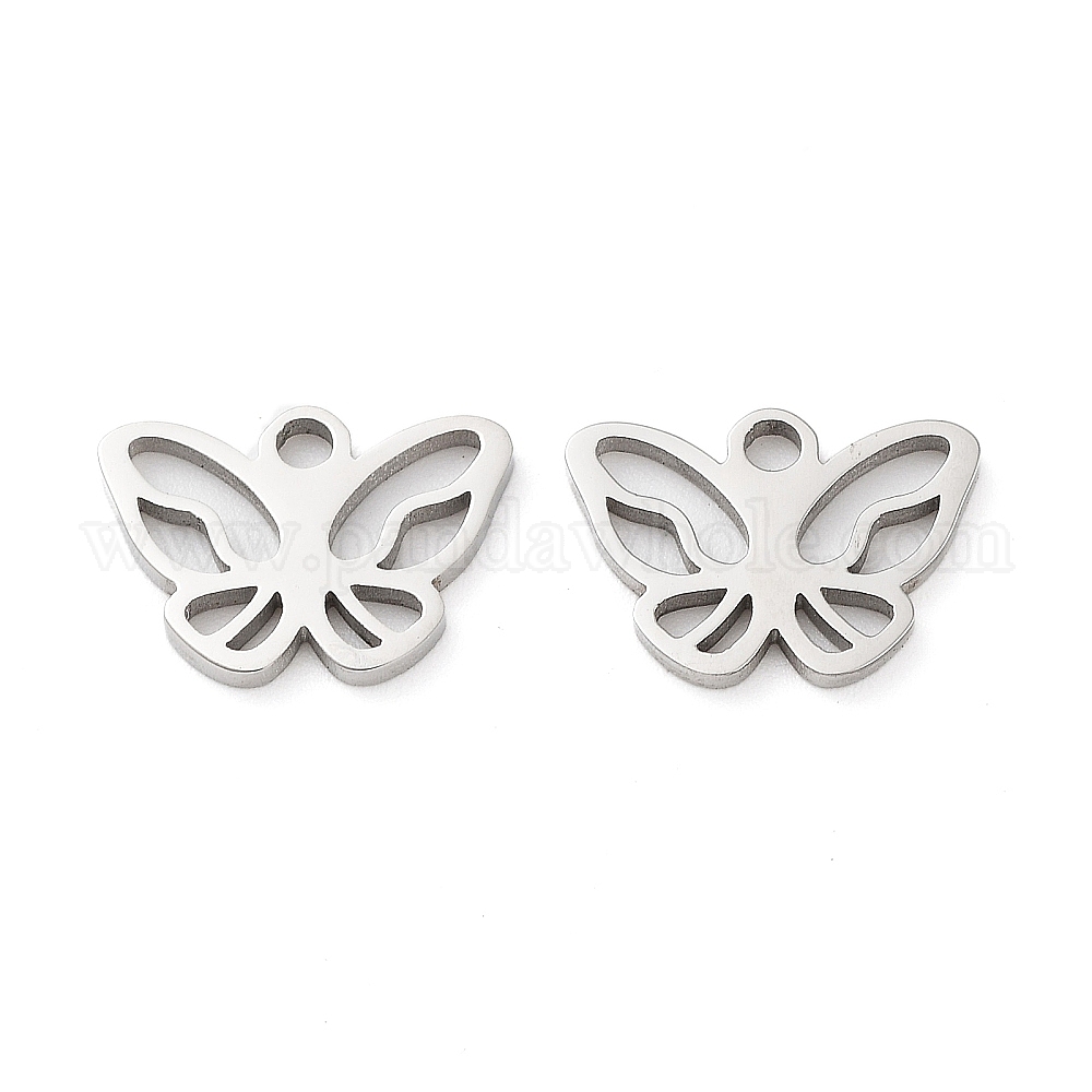 • Нержавеющая Сталь Цвет Не тускнеющие 316 подвески из хирургической нержавеющей стали, ручная полировка, лазерная резка, очарование бабочки, цвет нержавеющей стали, 9x12.5x1.2 мм, отверстие : 1.6 мм