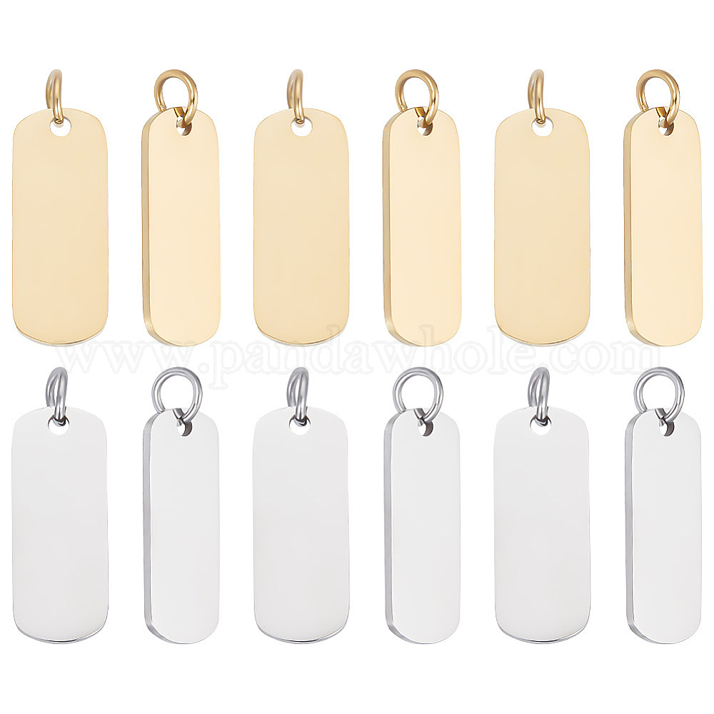 12 шт. 2 цвета 201 подвески из нержавеющей стали, ручная полировка, прямоугольные, штамповка пустой метки