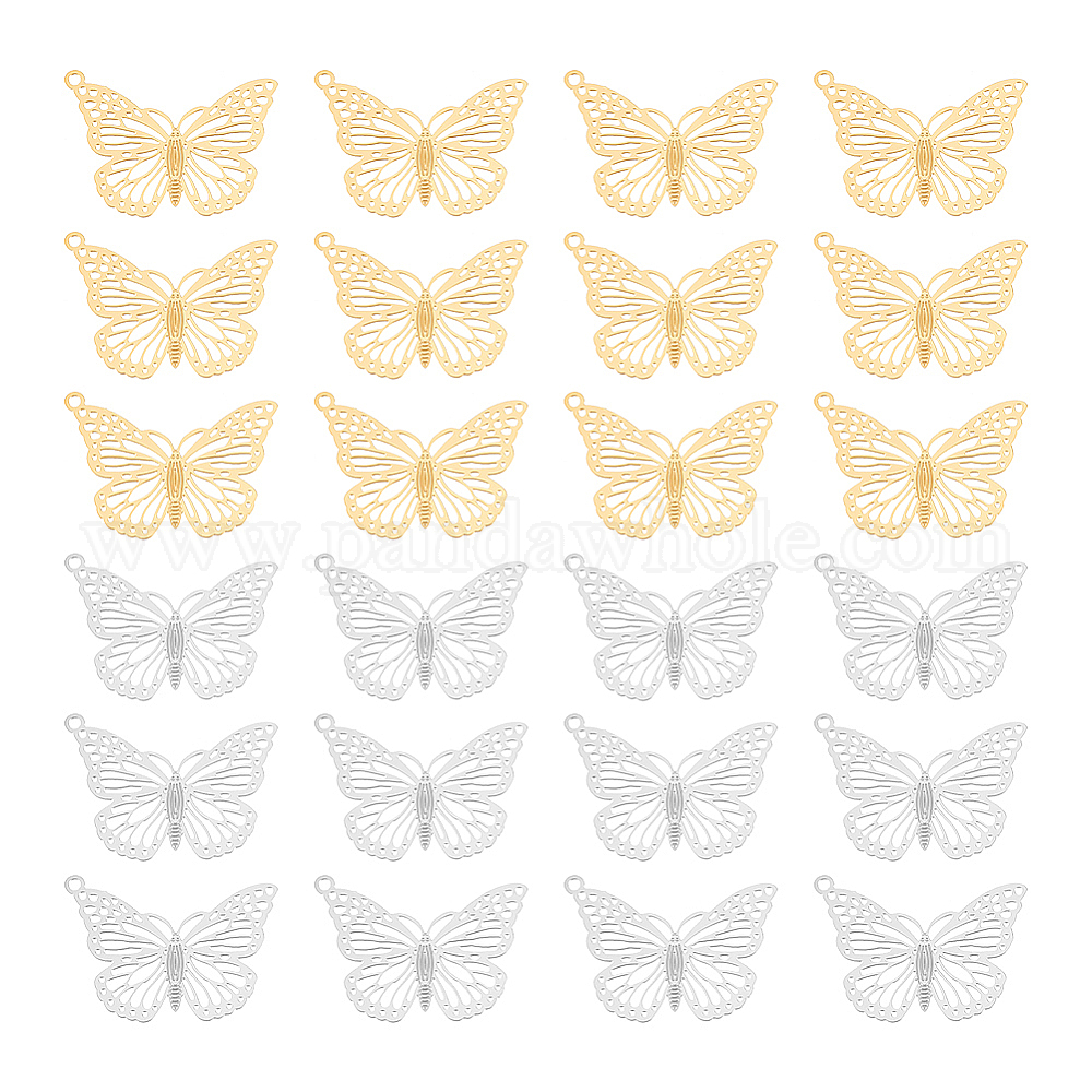 40 шт. 2 цвета 201 и 304 филигранные подвески из нержавеющей стали, гравированные металлические украшения, бабочка (02QRXN)