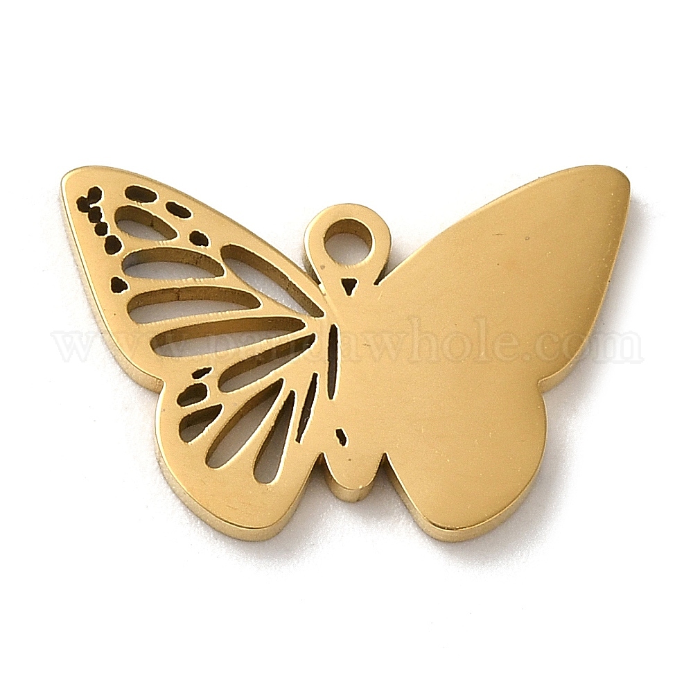 • Золотой Ионное покрытие (ip) 304 подвески из нержавеющей стали, лазерная резка, очарование бабочки, золотые, 12x18x1.5 мм, отверстие : 1.4 мм