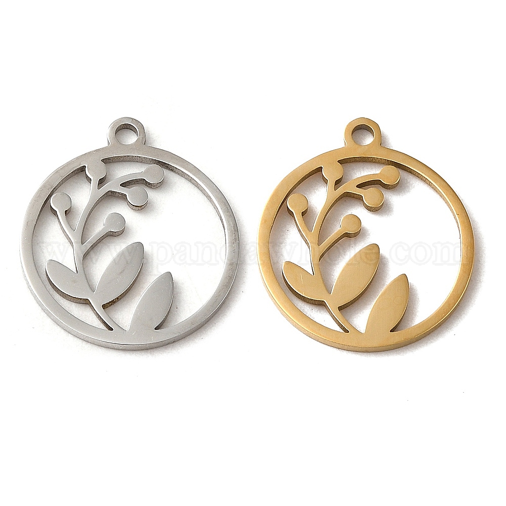 201 подвески из нержавеющей стали, лазерная резка, плоский круглый с подвеской в виде листьев