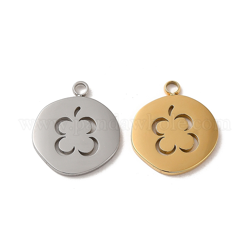 304 подвески из нержавеющей стали, плоский круглый шарм с цветочным узором