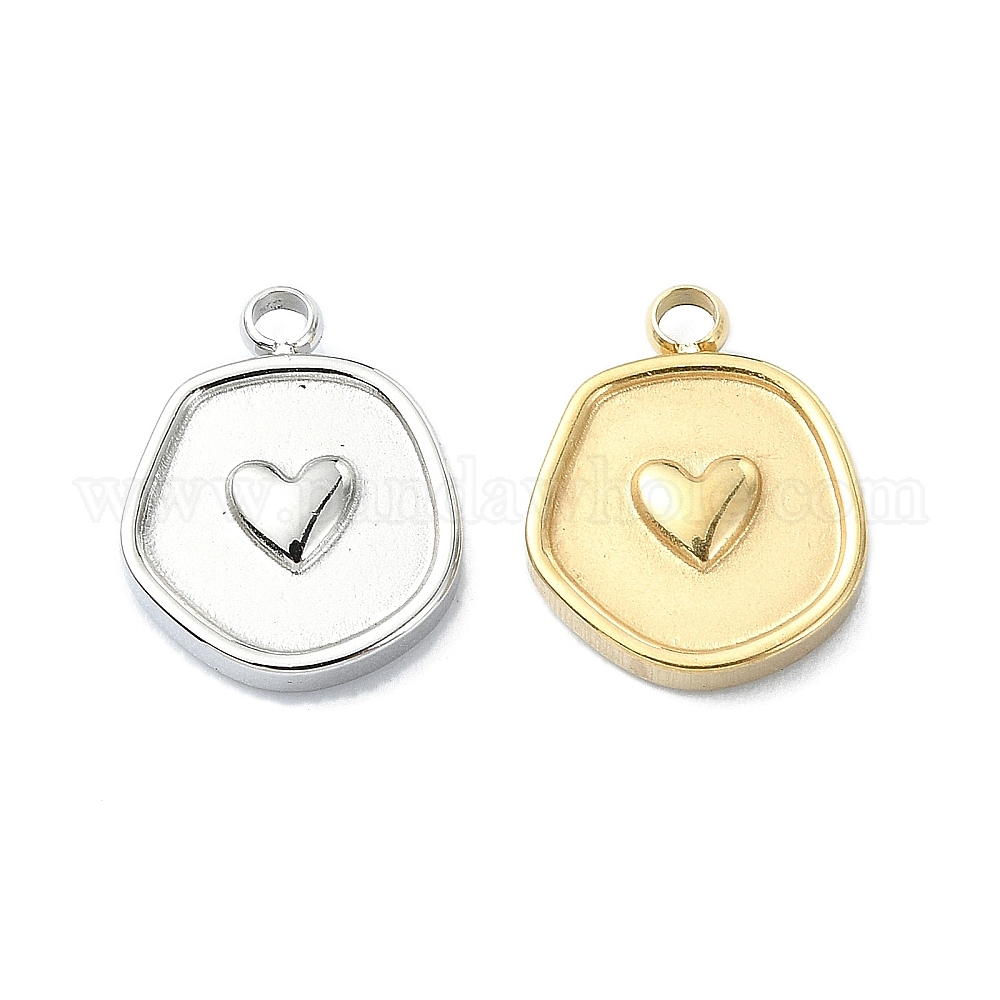 • Нержавеющая Сталь Цвет Не тускнеющие 304 подвески из нержавеющей стали, плоский круглый с подвеской в виде сердца, цвет нержавеющей стали, 12.5x10x2 мм, отверстие : 1.4 мм