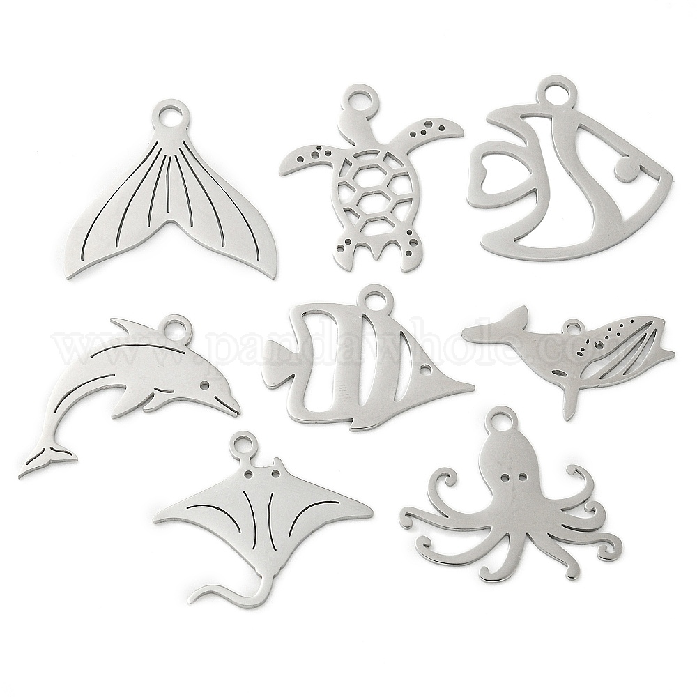 304 подвески из нержавеющей стали, лазерная резка, цвет нержавеющей стали, очарование морских животных