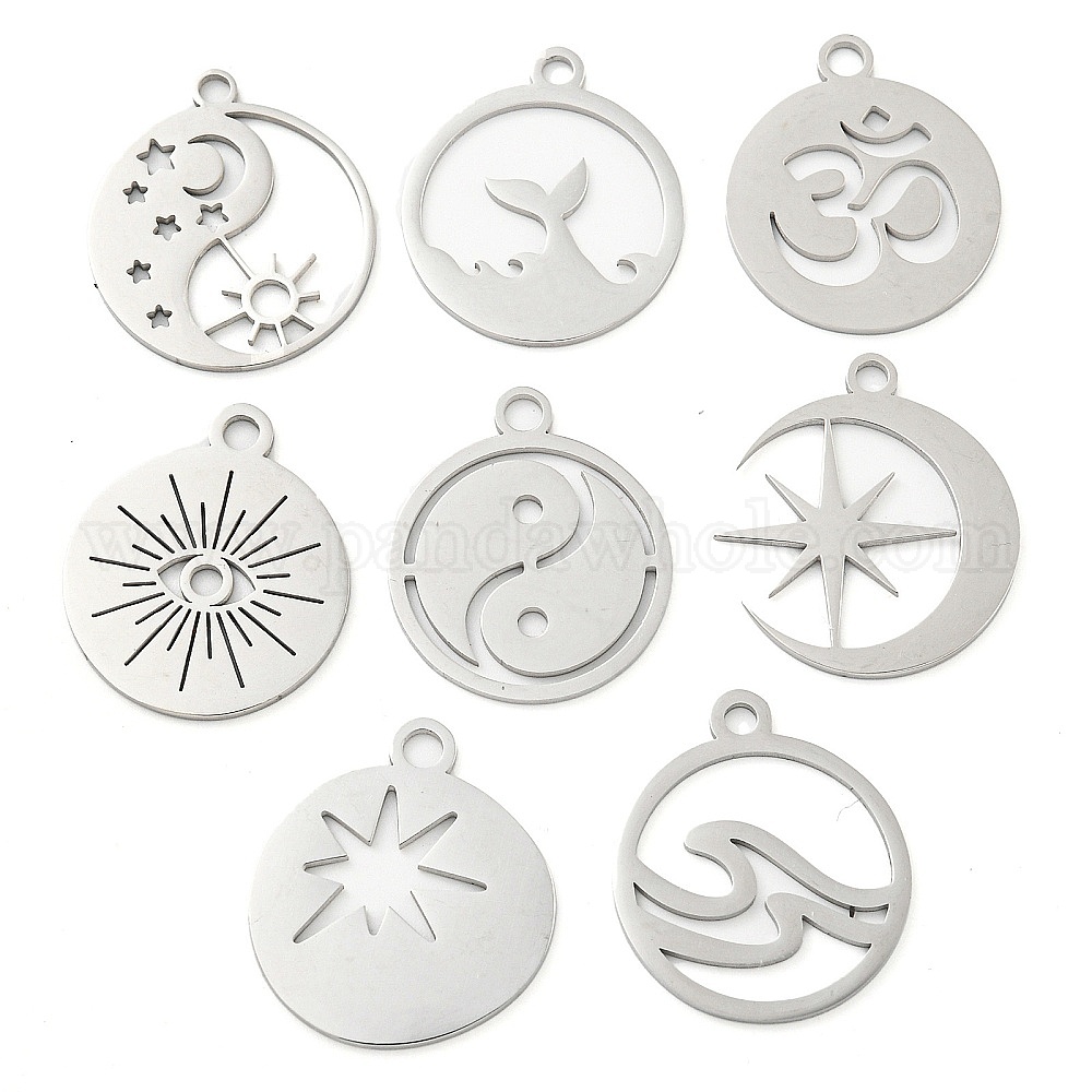 304 подвески из нержавеющей стали, лазерная резка, цвет нержавеющей стали, плоский круглый шарм