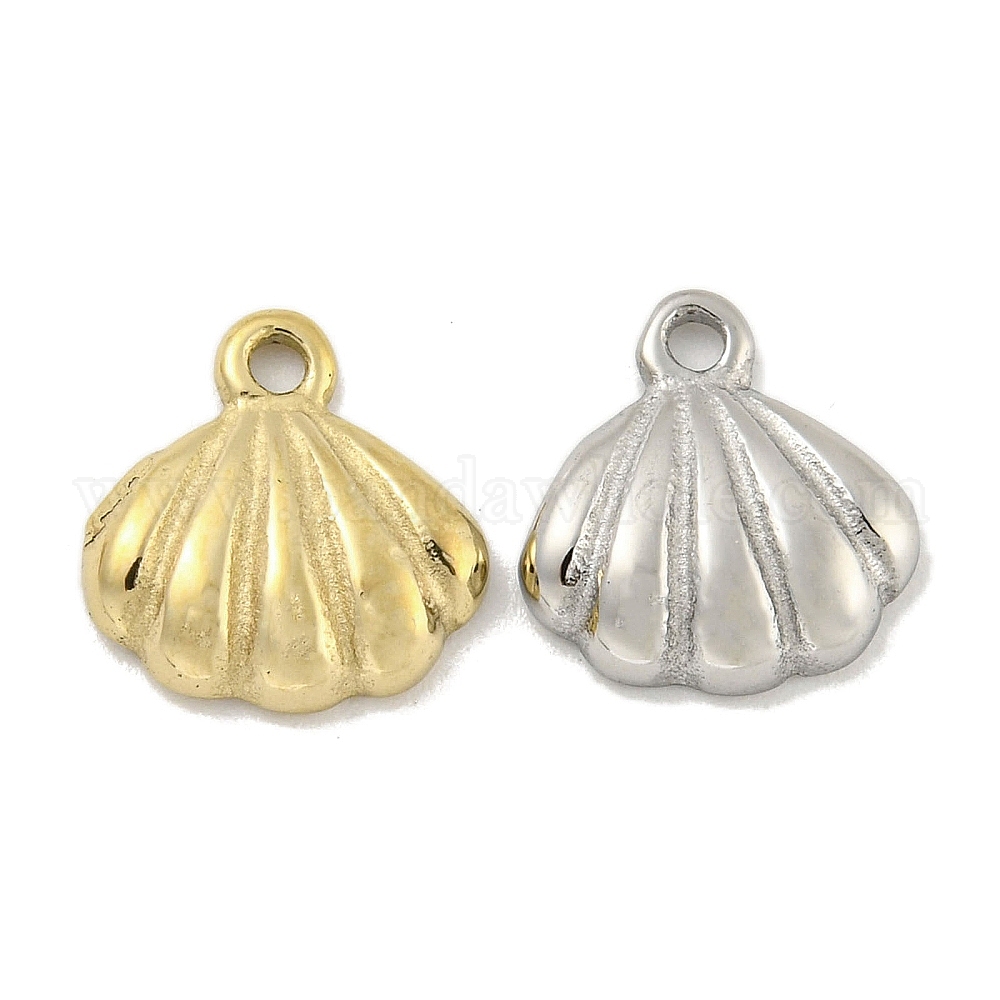 • Нержавеющая Сталь Цвет Не тускнеющие 304 подвески из нержавеющей стали, шарм в форме ракушки, цвет нержавеющей стали, 9.5x9.5x2 мм, отверстие : 1.2 мм