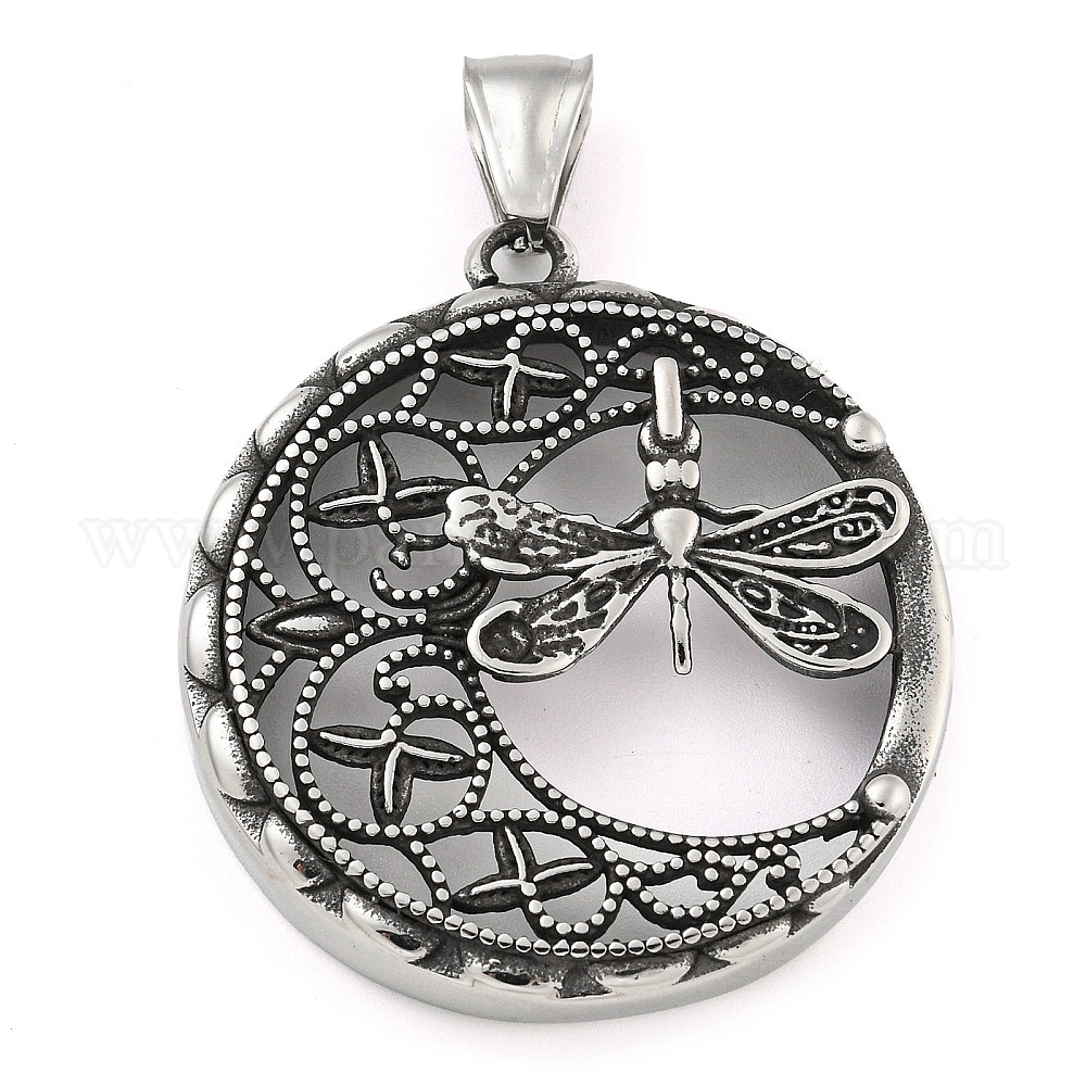 304 подвески из нержавеющей стали, плоский круглый с подвеской в виде стрекозы