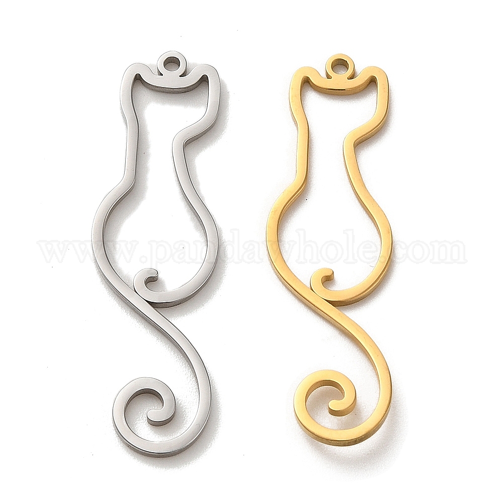 • Настоящее золото 18K 304 подвески из нержавеющей стали, лазерная резка, амулет полого кота, реальный 18 k позолоченный, 33x10x1 мм, отверстие : 1.2 мм