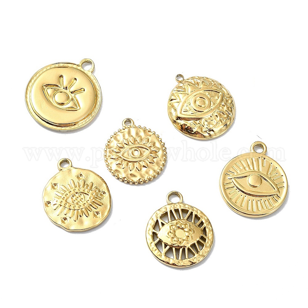 Ионное покрытие (ip) 304 подвески из нержавеющей стали, плоский круглый с шармом в виде глаз