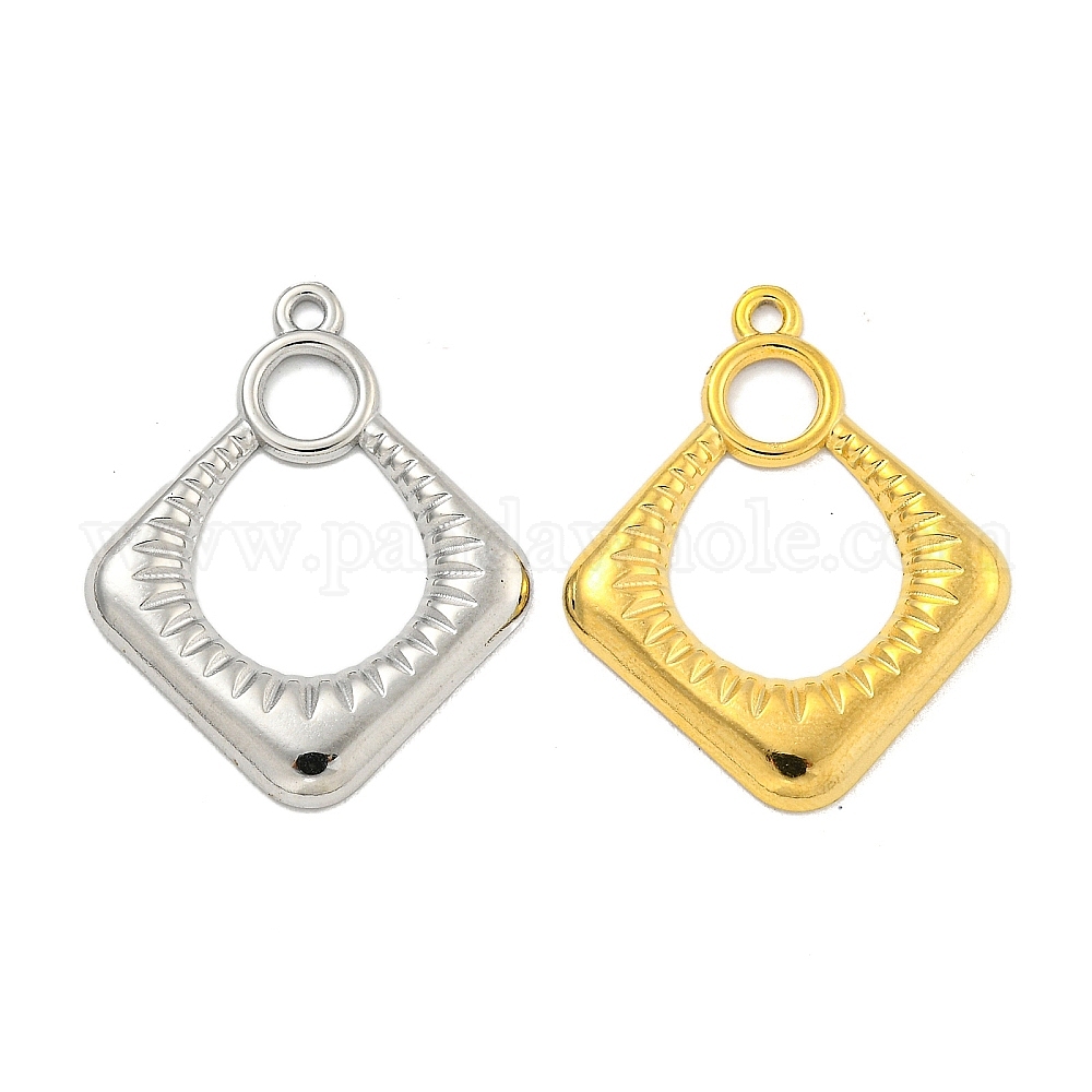 • Золотой 304 подвески из нержавеющей стали, ромбовидный шарм, золотые, 24.5x19.5x2 мм, отверстие : 1.2 мм