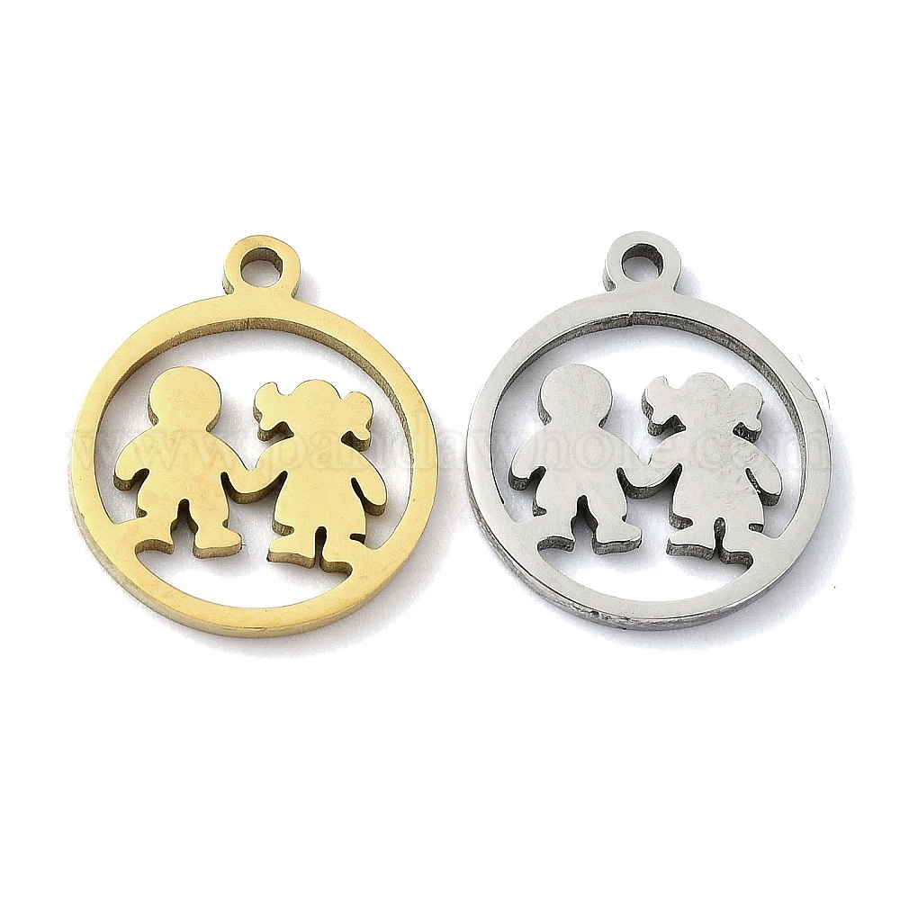 • Золотой 304 прелести нержавеющей стали, лазерная резка, плоский круглый с парой подвесок, золотые, 14x11.5x1 мм, отверстие : 1.2 мм