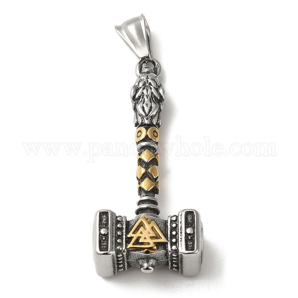 • Античный Серебристый & Золотой Викинг 304 подвески из нержавеющей стали, молот Тора с подвеской из валкнута, старинное серебро & золотой, 48.5x21.5x10.5 мм, отверстие : 8x3.5 мм