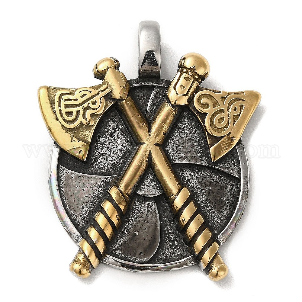Викинг 304 подвески из нержавеющей стали, плоский круглый с подвеской в виде двойного топора