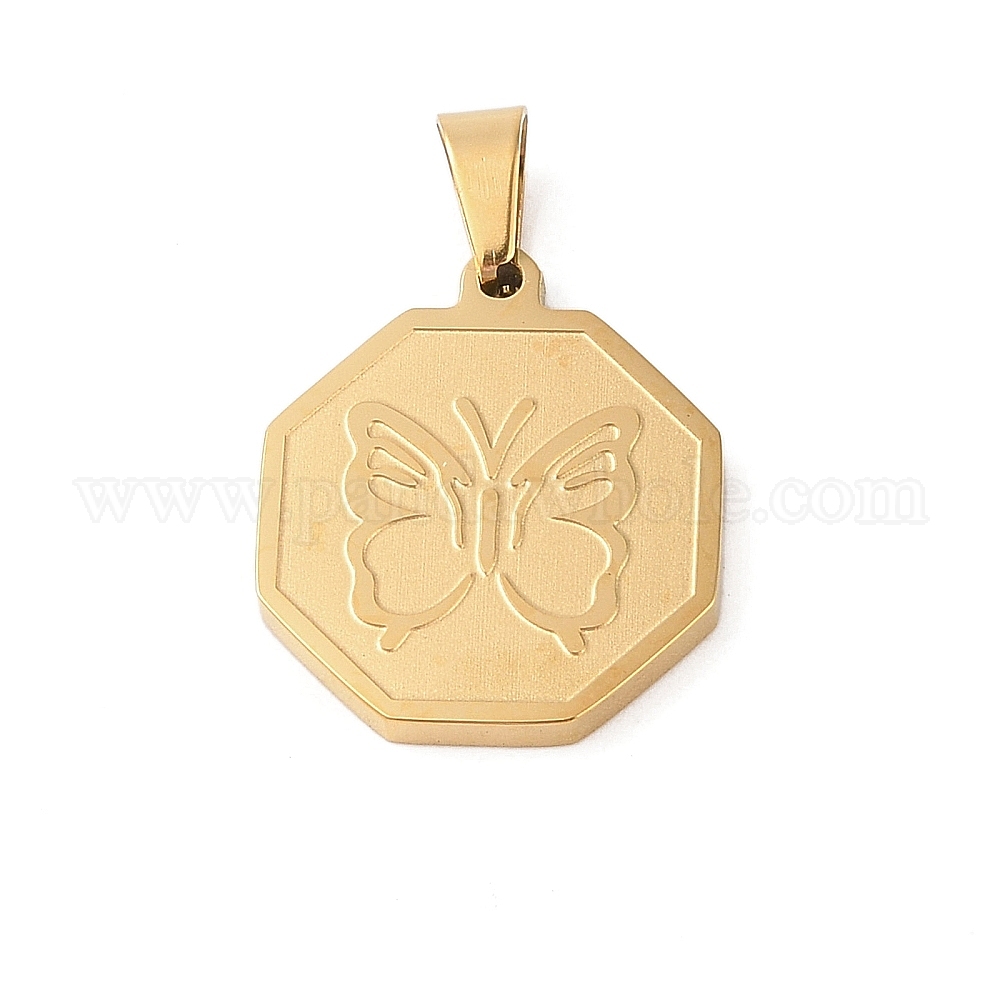 • Золотой Шкентели нержавеющей стали, восьмиугольник с подвеской-бабочкой, золотые, 23x20x2 мм, отверстие : 3.5x6 мм