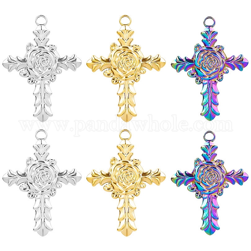 304 подвески из нержавеющей стали, крестик с розой
