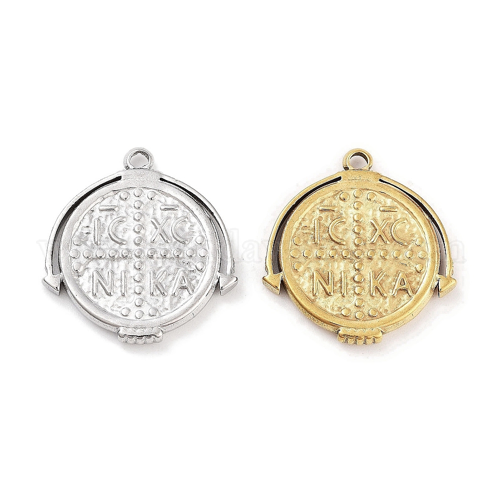 • Золотой 304 подвески из нержавеющей стали, Плоский круглый шарм со словом icxc nika, золотые, 19x19x2 мм, отверстие : 1.5 мм