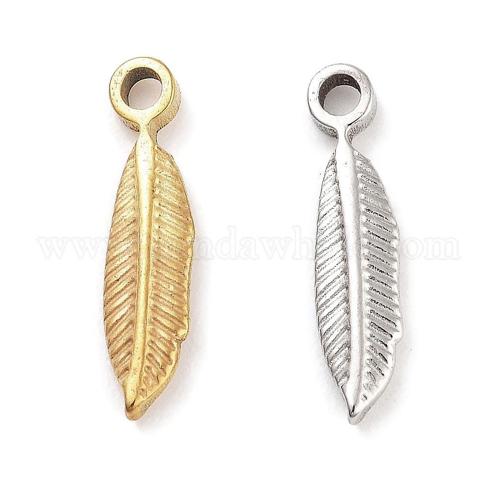 • Золотой 304 подвески из нержавеющей стали, очарование перьев, золотые, 15.5x4x2 мм, отверстие : 1.6 мм