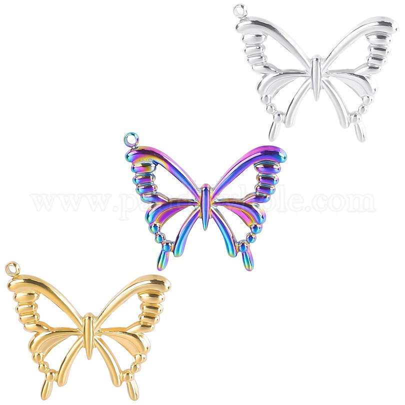 • Rainbow Color Шкентели нержавеющей стали, очарование бабочки, Радуга цветов, 23x26 мм, отверстие : 1 мм