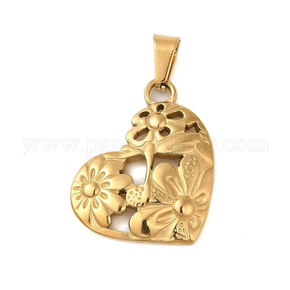 Ионное покрытие (ip) 304 подвески из нержавеющей стали, сердце с цветочным шармом