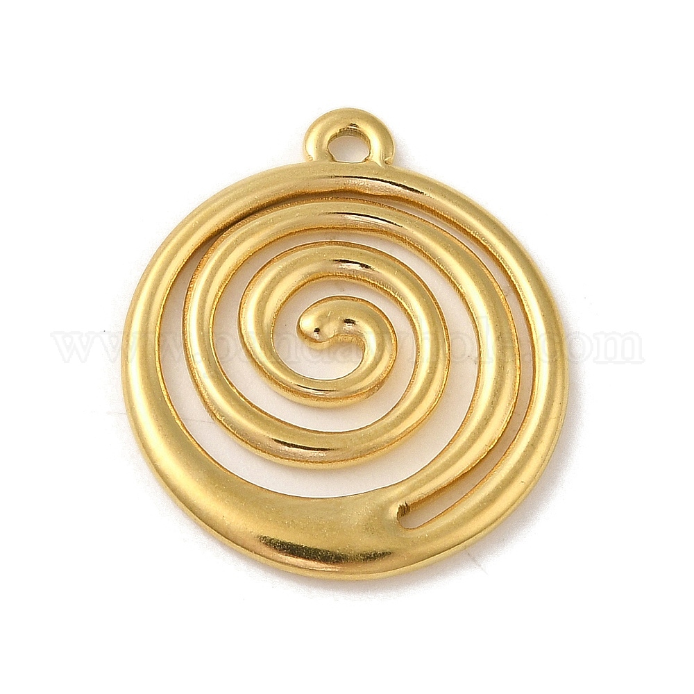 • Настоящее золото 18K Ионное покрытие (ip) 304 подвески из нержавеющей стали, плоский круглый с подвеской Vortex, реальный 18 k позолоченный, 23.5x20.5x2 мм, отверстие : 1.6 мм