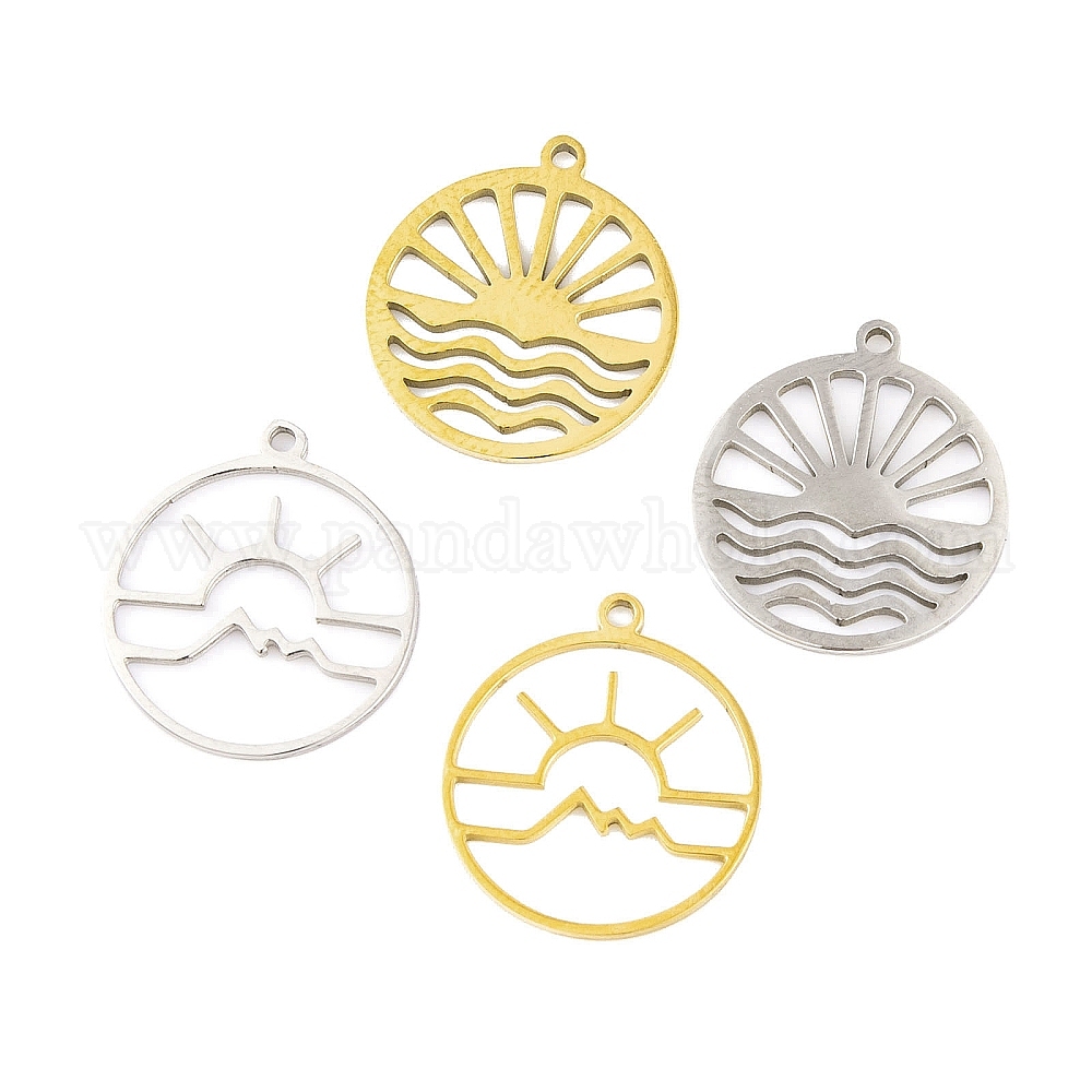 5 шт. 201 подвески из нержавеющей стали, лазерная резка, плоский круглый с солнечным шармом