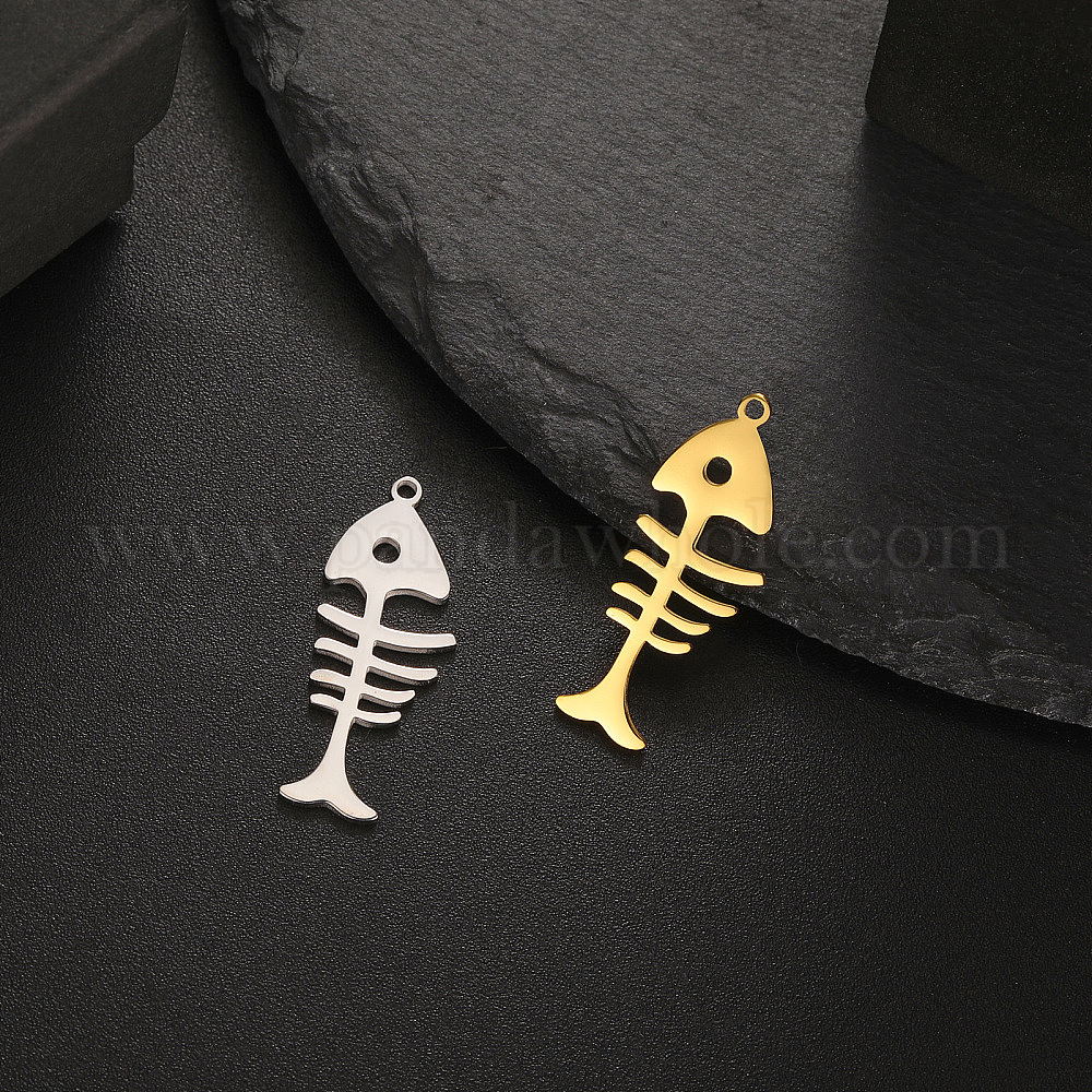 • Золотой Шкентели нержавеющей стали, лазерная резка, очарование рыбьей кости, золотые, 25x10 мм